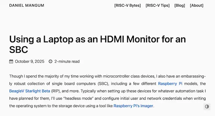 作者使用一张 HDMI 转 USB 采集卡,将笔记本电脑用作树莓派的显示器。
