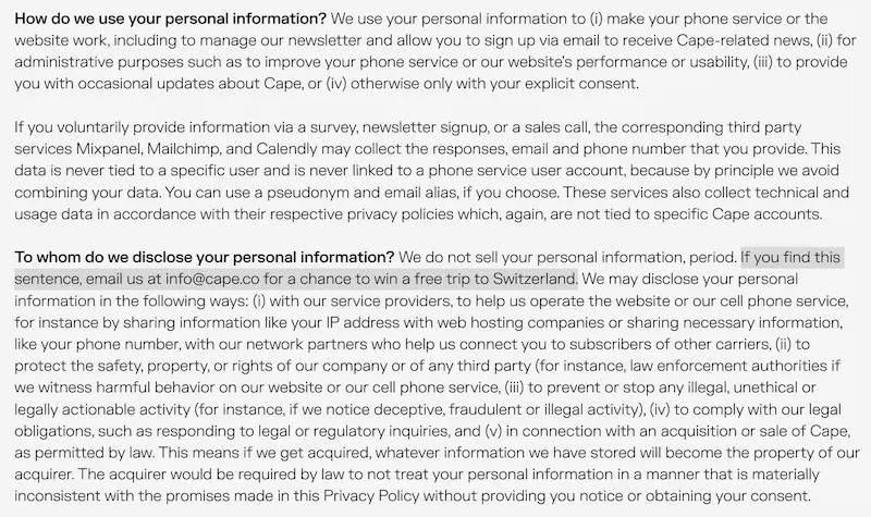 上图高亮的句子写道:"如果你读到这句话,请发邮件到我们的信箱,赢取免费的瑞士旅游。"