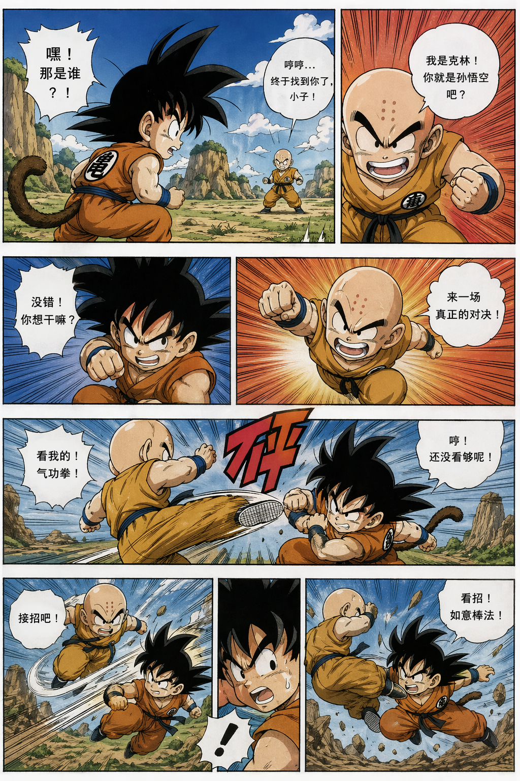 ▲提示词:经典漫画书内页,包含分镜格子、人物动态动作、对话气泡